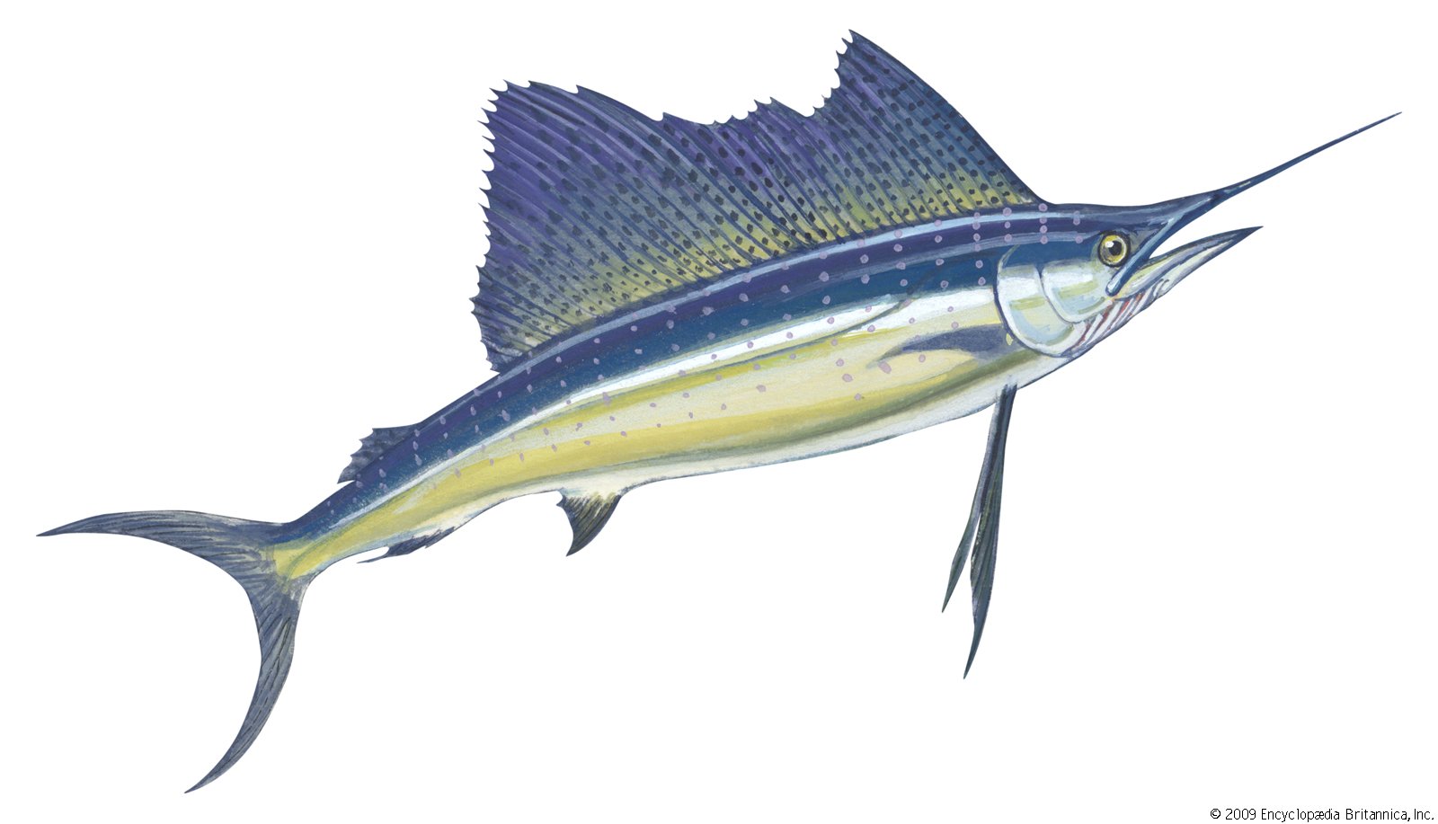 Il pesce vela può nuotare fino ad una velocità di 110 chilometri orari e, secondo alcuni esperti, questo fa di lui il pesce più veloce del mondo. Facilmente riconoscibile, il pesce vela prende il nome dalla sua spettacolare pinna dorsale a forma di vela, che si estende per tutta la lunghezza del suo corpo. Ha una mascella superiore molto più lunga rispetto a quella inferiore ed entrambe sono allungate ed appuntite, simili ad una lancia.