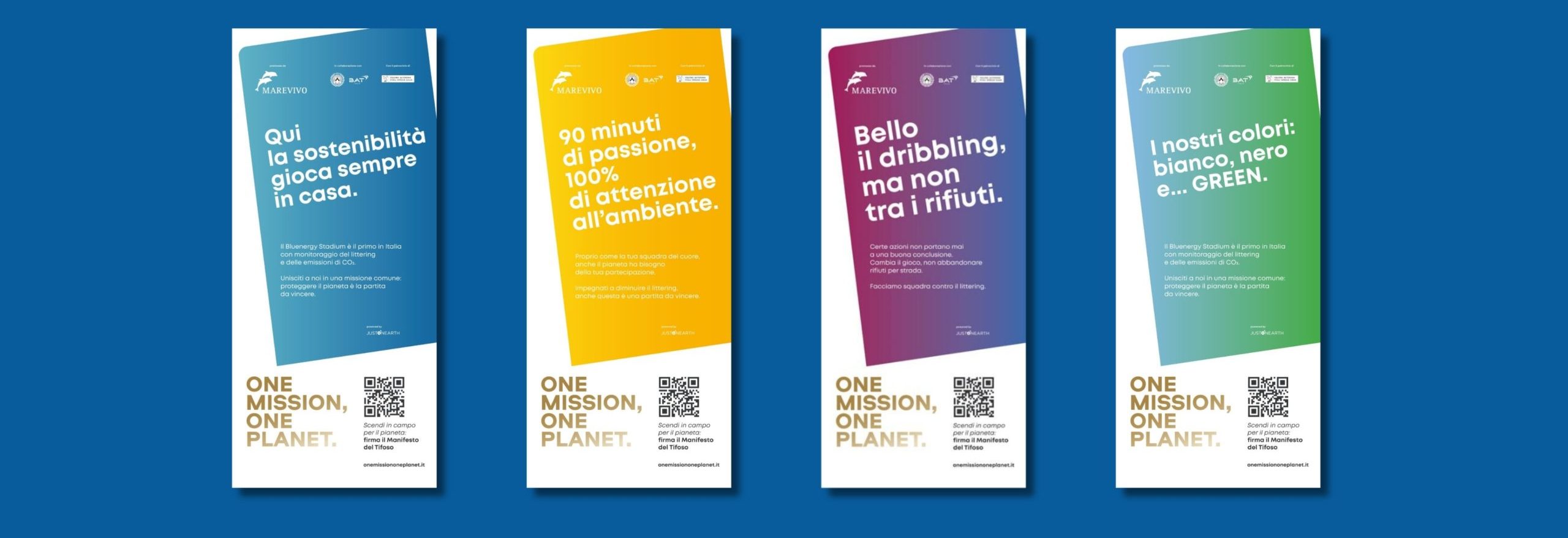 La campagna che punta a sensibilizzare i tifosi sull’importanza di ogni gesto individuale, per raggiungere una vittoria ancora più grande: rendere il calcio uno sport sostenibile, a partire dal Bluenergy Stadium di Udine. Il progetto è in collaborazione con Udinese Calcio e BAT Italia con il patrocinio di Regione Autonoma FVG.