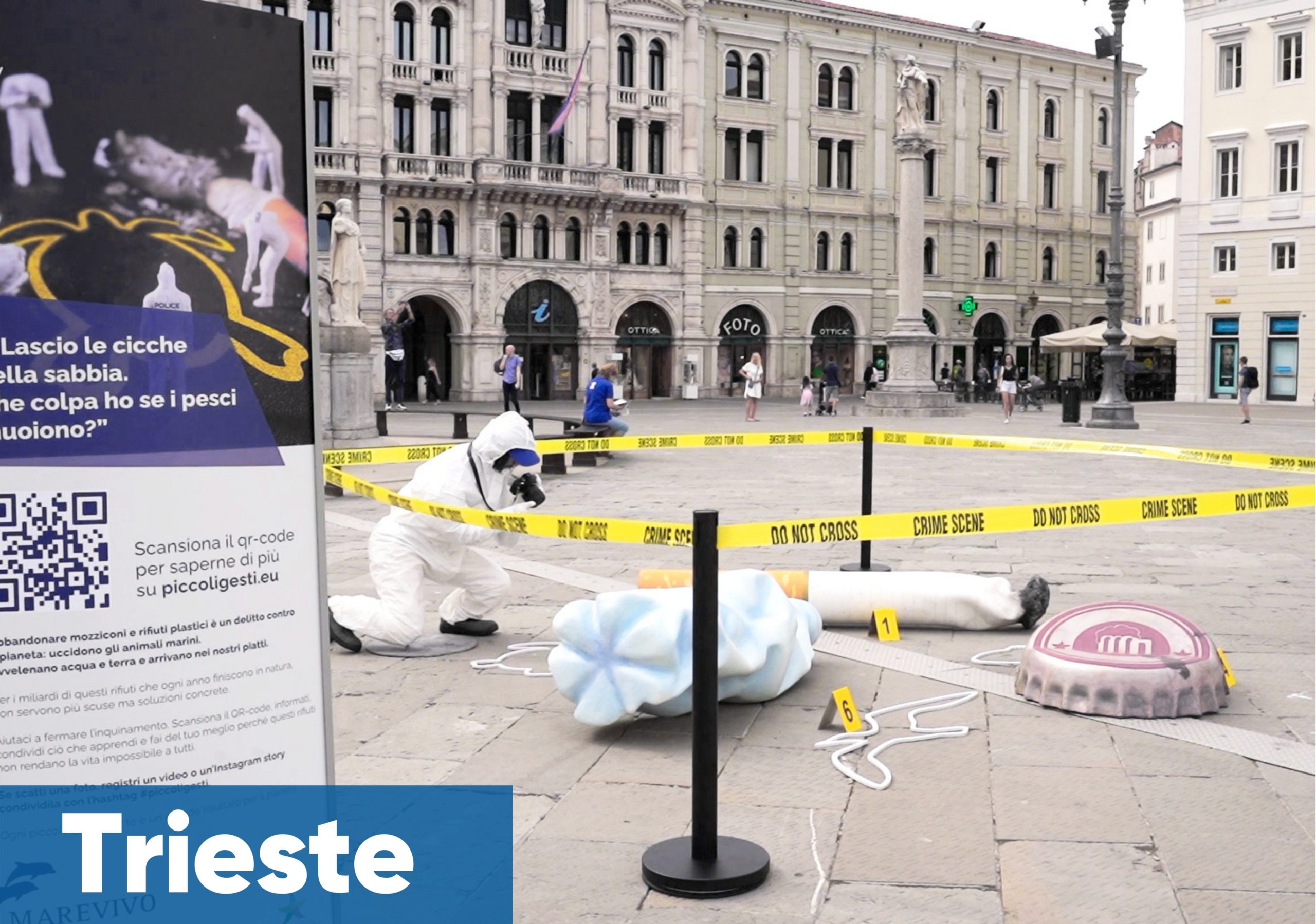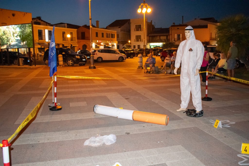 Per il 2022, nella "scena del crimine" accanto alle vittime - raffigurate da sagome di pesci, tartarughe e stelle marine – la simbolica arma del delitto non è stata rappresentata solo dal mozzicone gigante, ma anche dagli altri piccoli rifiuti, soprattutto di plastica, che si trovano nelle nostre città e che finiscono sulle spiagge e nel mare.