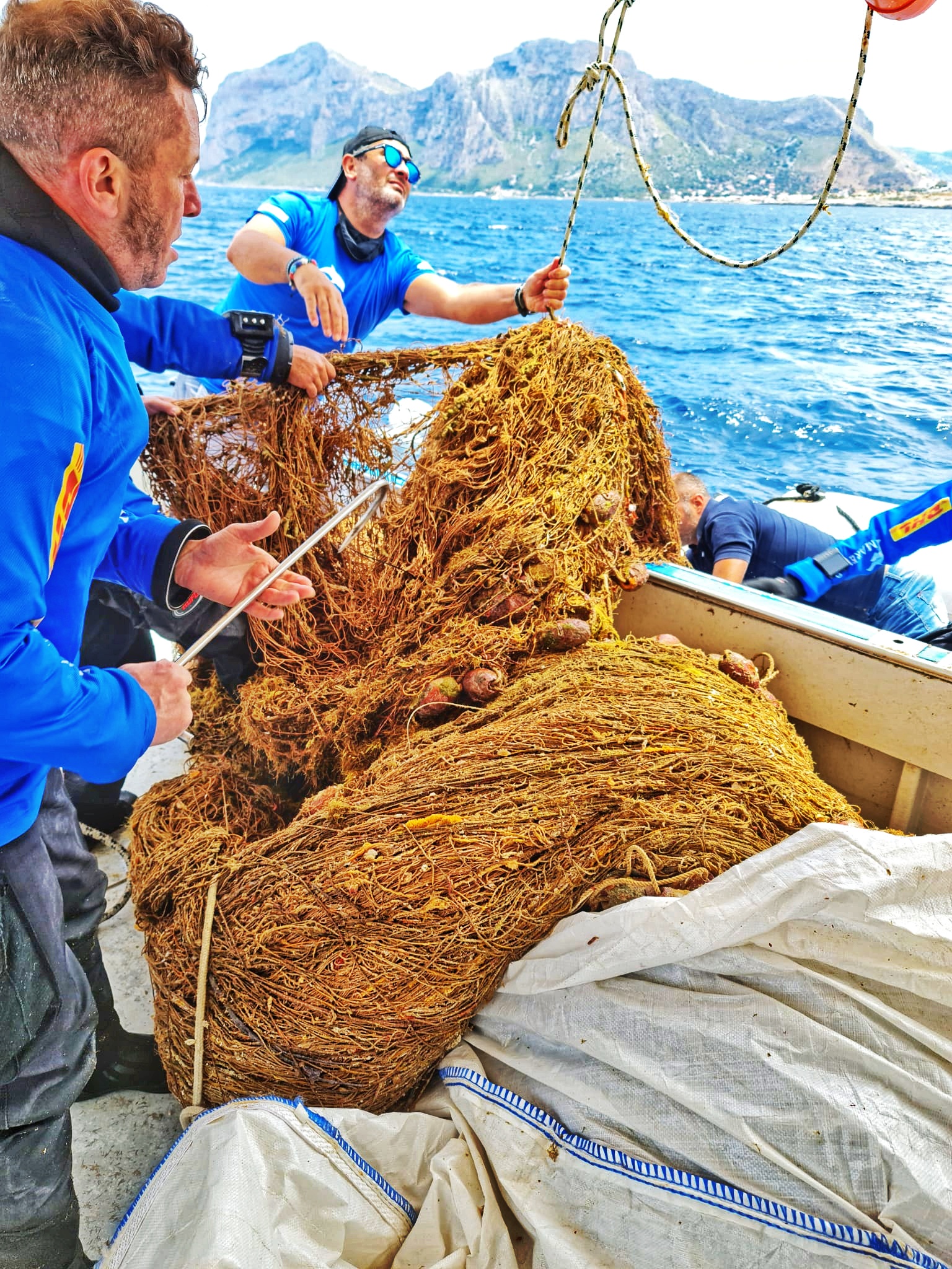 Le attrezzature da pesca abbandonate sono i rifiuti maggiormente rinvenuti nei mari di tutto il mondo, e rappresentano una delle più serie minacce alla biodiversità marina: per questo la Divisione Subacquea di Marevivo si è immersa nelle acquedell’Isola delle Femmine e di San Vito Lo Capo liberandole da due reti fantasma, tra cui una rete spadara derivante lunga oltre 2.500 metri. Le reti spadare sono dispositivi estremamente pericolosi per la fauna marina e per questo, anche grazie al lavoro di Marevivo, illegali in Italia dal 2002, ma nonostante questo continuano a essere utilizzate minacciando gli ecosistemi marini. L’operazione – condotta nell’ambito di Linea Gialla, il progetto di tutela ambientale di DHL Express Italy e Federazione Italiana Pallavolo in collaborazione con Marevivo che si svilupperà in diverse tappe sul territorio nazionale, è stata realizzata dai sub di Marevivo con il supporto del Nucleo Subacqueo dei Carabinieri e della Guardia Costiera-Corpo delle Capitanerie di Porto, coadiuvati dai biologi marini di Marevivo che hanno assistito alle operazioni e fatto un’attività di analisi dello stato della rete che era adagiata su un fondale caratterizzato dalle tipiche biocenosi del coralligeno Mediterraneo.