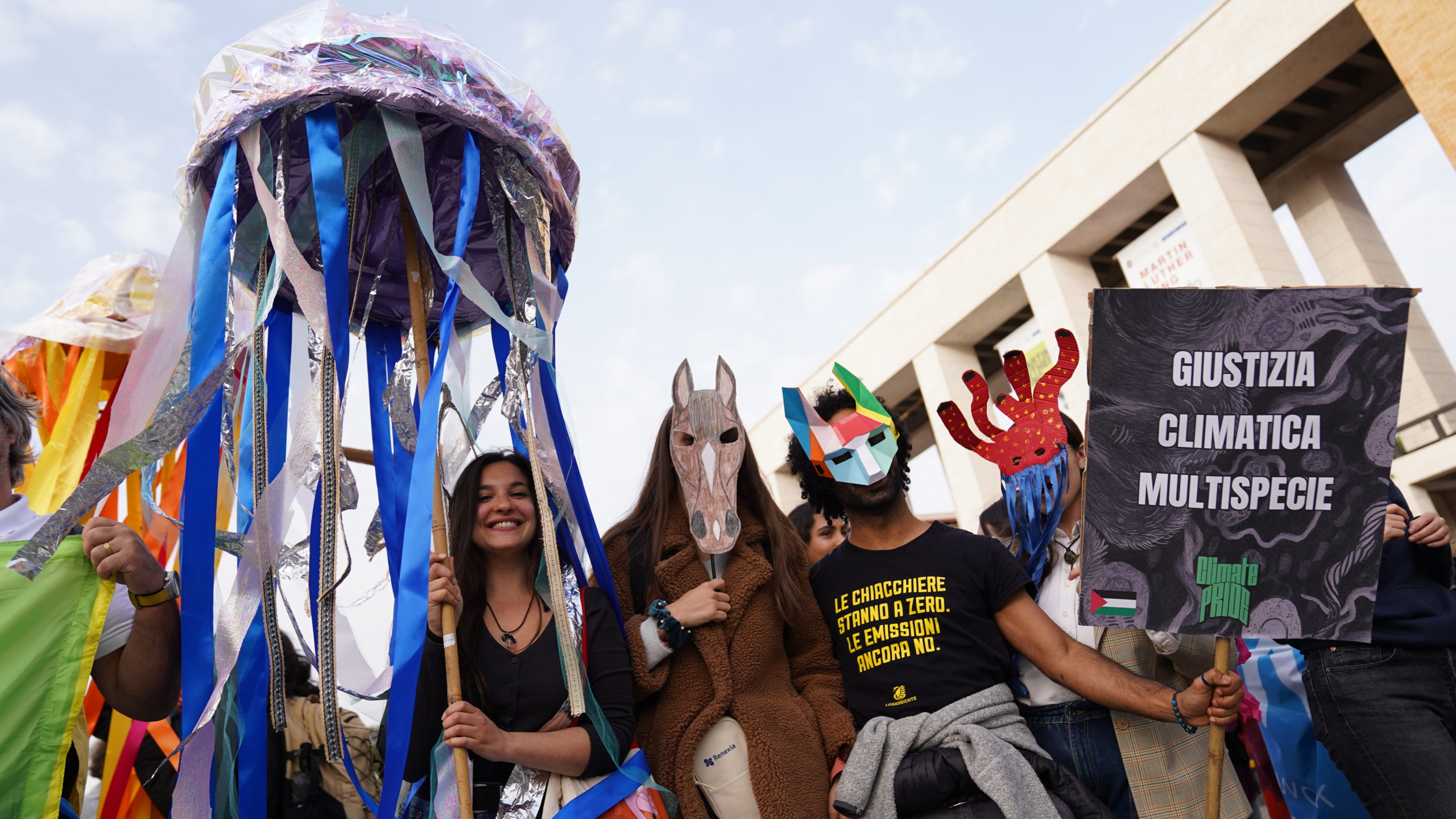Sabato scorso si sono riunite in piazza a Roma, migliaia di persone, tra associazioni, movimenti, cittadine e cittadini, che hanno formato una lunga street parade performativa con maschere di organismi, pale eoliche, la scenografia di un antico ulivo palestinese e lo striscione “Dall’Amazzonia all’Europa Giustizia Climatica Planetaria”. È partita da Piazzale Aldo Moro ed è confluita a Largo Preneste, zona est della Capitale, per chiedere ai leader politici riuniti alla COP30 di Belém una svolta concreta nelle politiche climatiche e sociali.