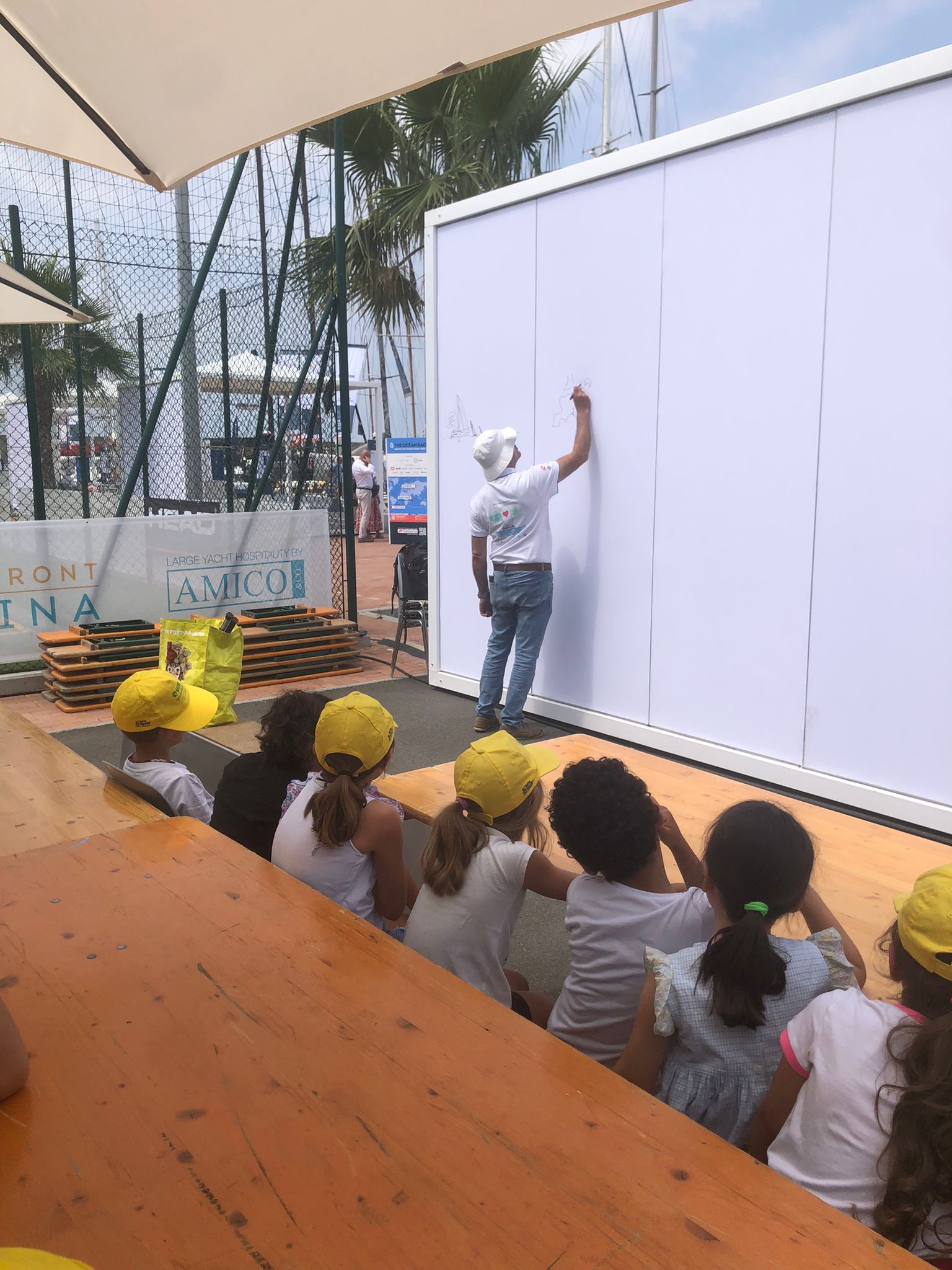 Il progetto consiste nel portarli in mare a bordo di cabinati a vela, insegnare loro le basi della sicurezza, dell’ambiente e della navigazione, farli lavorare in gruppo. Dopo la lezione di vela, che dura tutta la mattinata, e dopo un meritato piatto di spaghetti, spesso offerto dal circolo ospitante, si passa a una lezione di disegno che innanzitutto spiega i vantaggi del disegno per l’espressione: costa zero, è internazionale, permette di mostrare cose non viste o solo immaginate, e via dicendo.