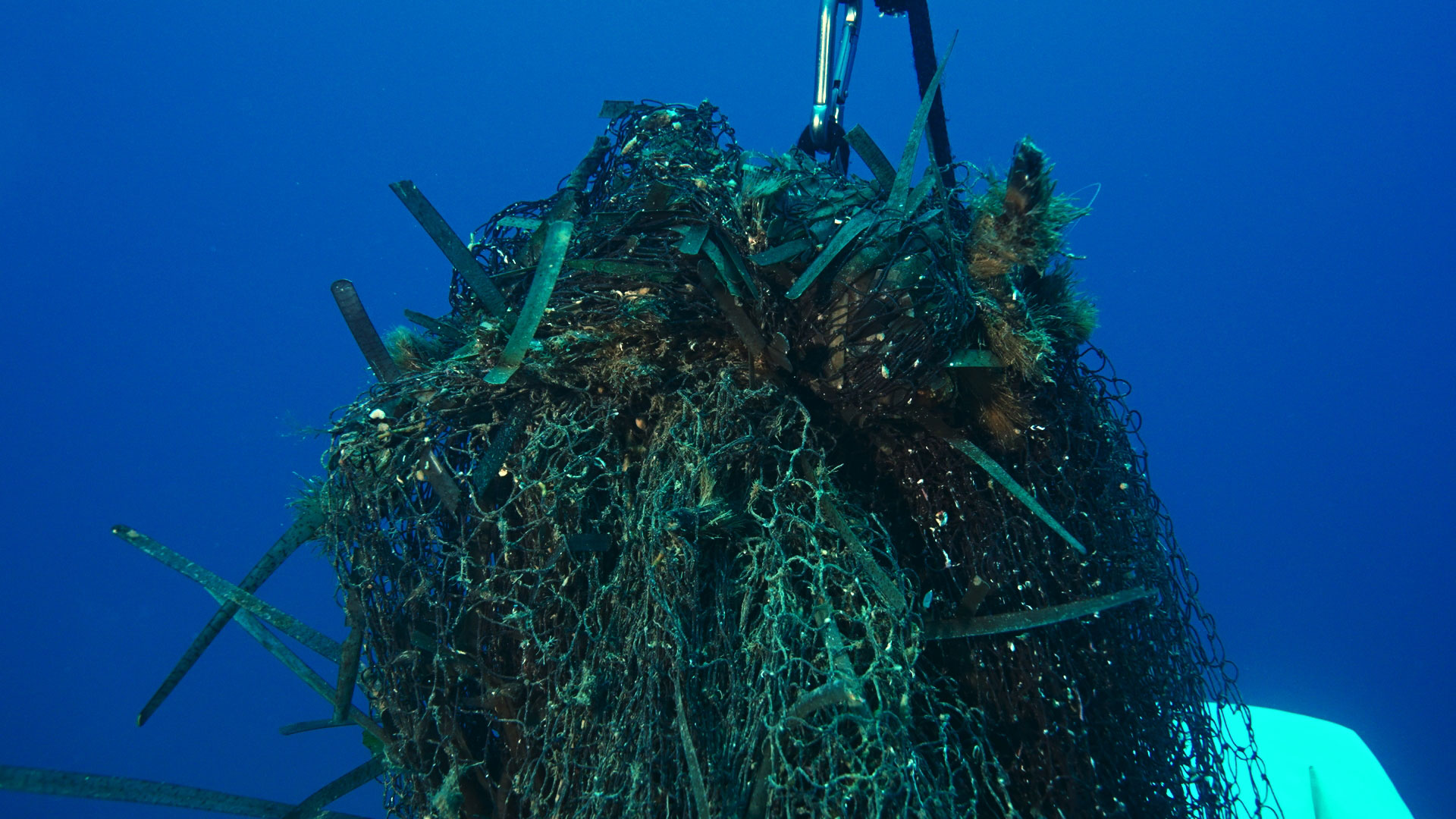 Gli attrezzi da pesca, tra cui le reti, sono i rifiuti di plastica maggiormente presenti nei mari di tutto il mondo e rappresentano una delle più serie minacce alla biodiversità marina: sono estremamente pericolose, perché si trasformano in trappole per la fauna marina e continuano a pescare, soffocando i fondali e distruggendo le forme di vita bentonica. Si sminuzzano, infine, nel tempo e diventano microplastiche che, entrando nella catena alimentare, arrivano anche all’uomo. Si stima che ogni anno, nel mondo, circa 100.000 mammiferi marini e un milione di uccelli marini muoiano a causa dell’intrappolamento in reti da pesca fantasma o per ingestione dei relativi frammenti.