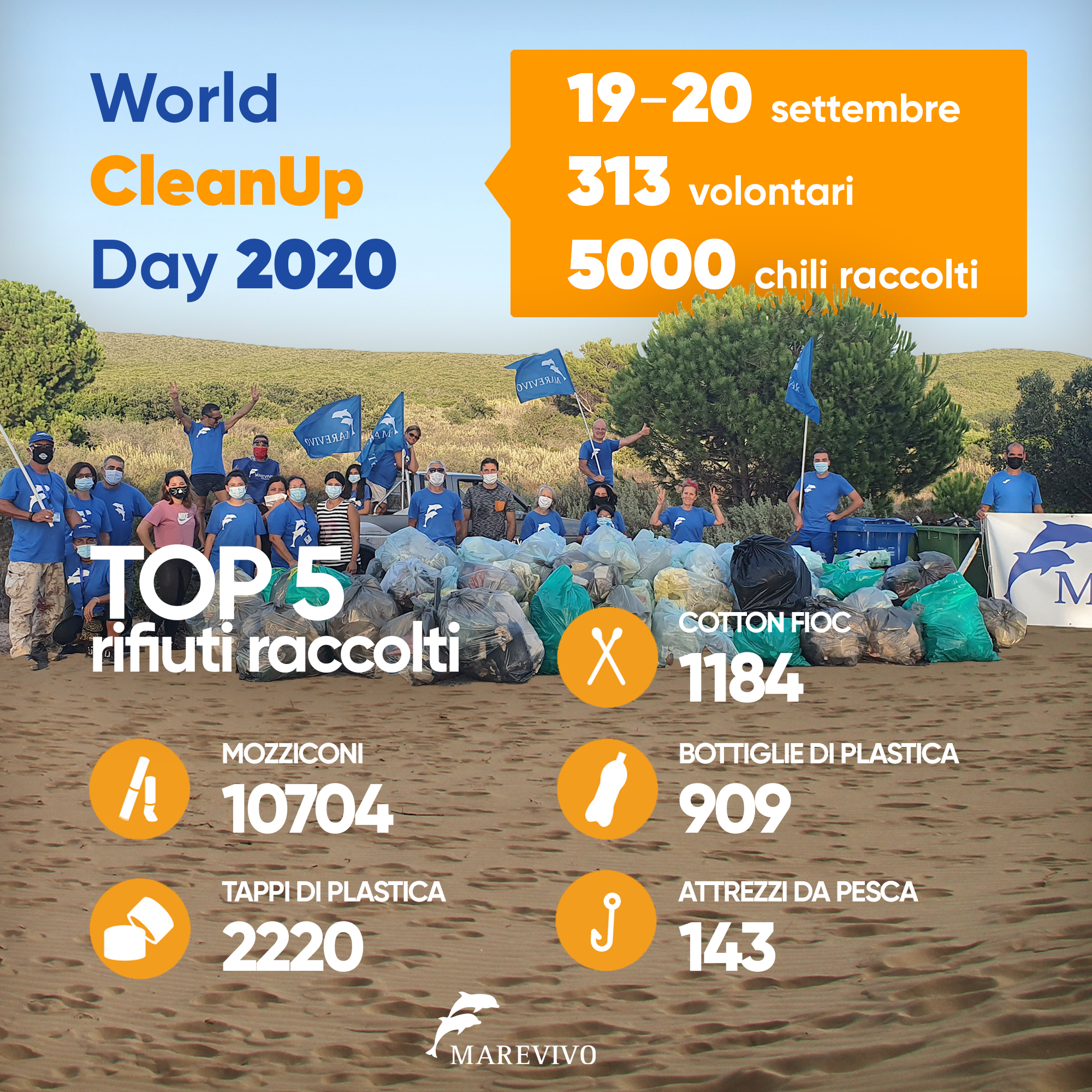 Tutti i rifiuti recuperati sono stati suddivisi per tipologia, catalogati e i relativi dati sono stati inseriti nell’APP Clean Swell messa a punto da Ocean Conservancy – in collaborazione con Marevivo – con l’obiettivo di raccogliere e condividere a livello internazionale informazioni preziose sull’inquinamento di mare, spiagge e coste.