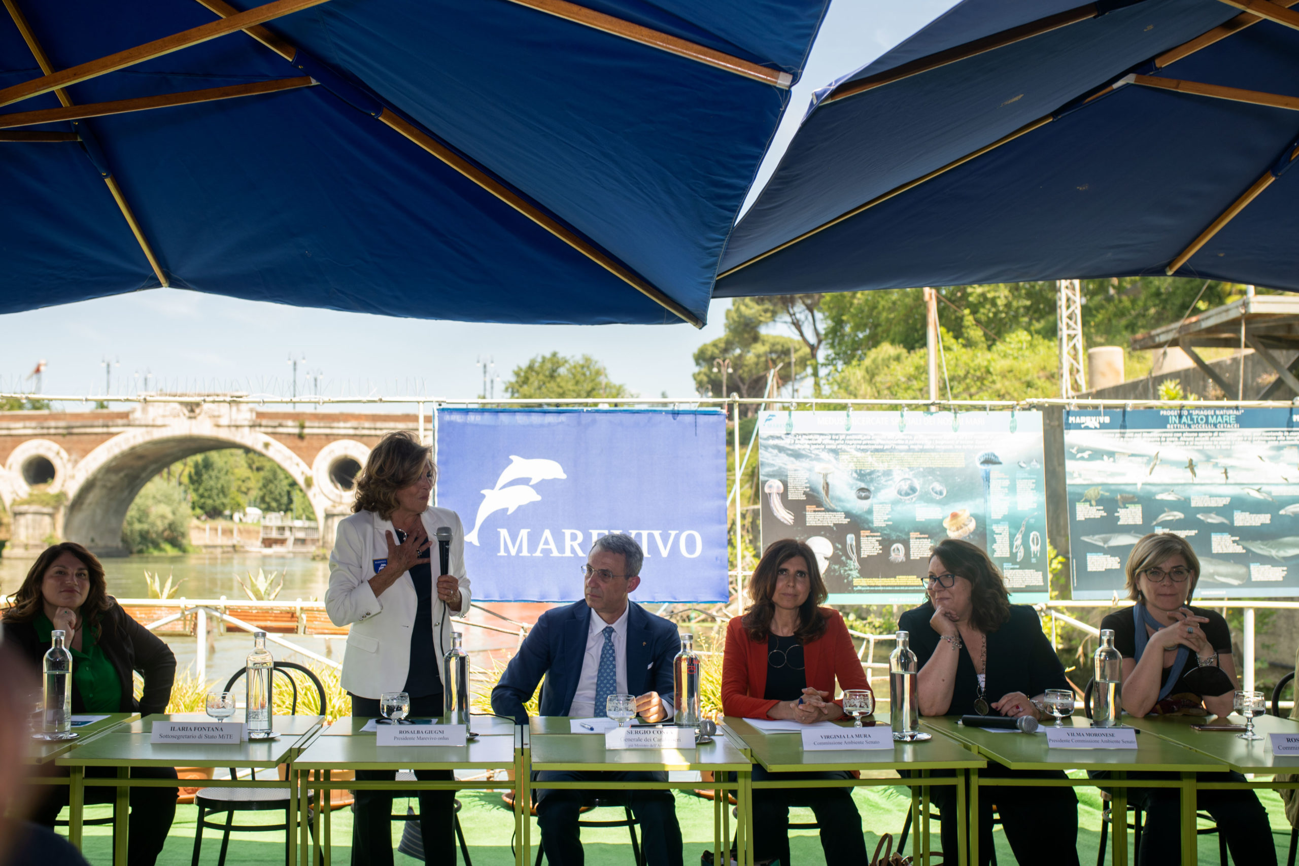 La Presidente di Marevivo Rosalba Giugni ha accolto la Senatrice Virginia La Mura, la Presidente della Commissione Ambiente del Senato Vilma Moronese, la Commissione Ambiente della Camera, nelle persone di Paola Deiana e Rossella Muroni, l’ex Ministro dell’Ambiente Sergio Costa, il Vicepresidente di Marevivo Onlus Ferdinando Boero e la Sottosegretaria di Stato MITE Ilaria Fontana.