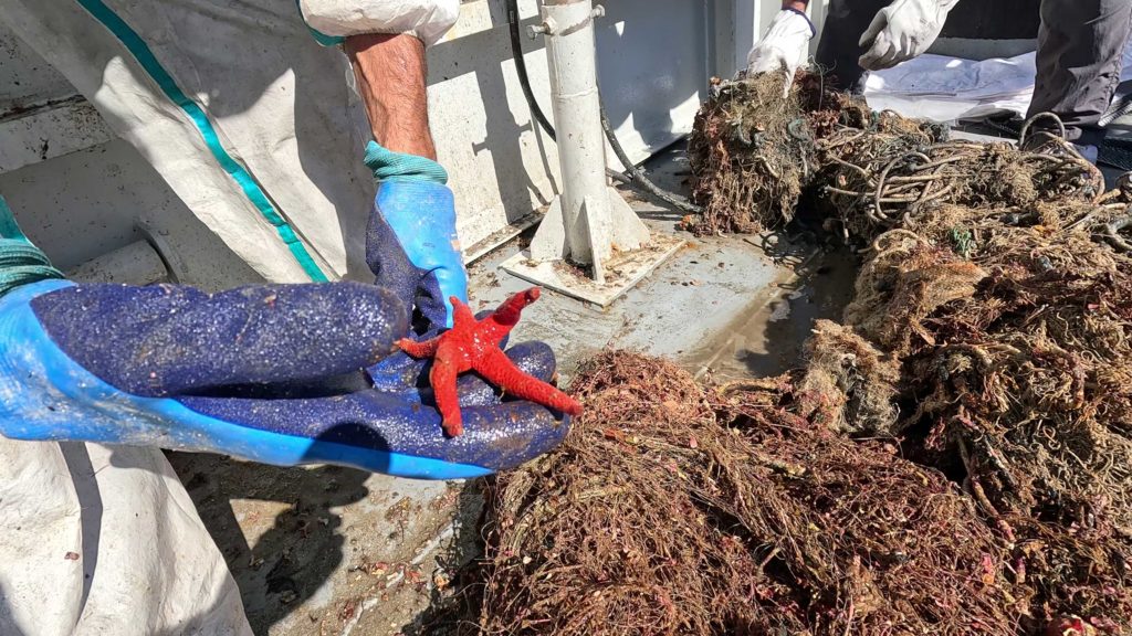 “Durante le operazioni, un’attenzione particolare è stata dedicata agli organismi intrappolati nelle reti, che sono stati liberati e reimmessi in mare dai ricercatori presenti a bordo. Tra questi molte specie protette quali il corallo Dendrophyllia ramea, la gorgonia rossa Paramuricea clavata, il riccio diadema (Centrostephanus longispinus), la stella Hacelia attenuata, la spugna Aplysina aerophoba nonché diversi Crostacei e Policheti. Tra i siti oggetto di intervento figurano anche i due casi studio di Gaiola e del Mar Piccolo di Taranto. In queste aree le attività proseguiranno fino a giugno 2026, con l’obiettivo di sviluppare un protocollo scientifico innovativo per valutare l’impatto degli attrezzi da pesca abbandonati e l’effetto del loro recupero su habitat sensibili, come il coralligeno, e su specie di interesse conservazionistico, come il cavalluccio marino” fa sapere Tania Dolce, in rappresentanza di CoNISMa.
