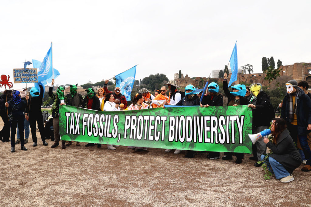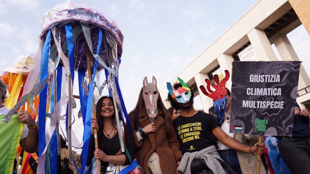 In occasione della seconda parte della COP16 nella sede della FAO di Roma, chiamata anche la COP della biodiversità, Marevivo scende in piazza insieme alle altre associazioni ambientaliste e umanitarie facenti parte del collettivo Climate Pride, per creare una azione performativa nella quale la multispecie si riunisce in una assemblea composta da circa 60 partecipanti vestiti da animali, piante, batteri, funghi richiedendo che vengano stanziati fondi per la tutela della biodiversità entro il 2030. Ogni specie ha cantato, ballato e fatto il suo intervento al microfono davanti a una trentina di giornalisti, televisioni e stampa, ai quali poi ha rilasciato interviste sotto l’unico nome Climate Pride. Il corteo della multispecie è stato guidato dal suono dei tamburi delle popolazioni indigene dal Circo Massimo fino alla sede della FAO di Roma. Le attiviste e gli attivisti di Marevivo Community si sono distinti essendo nuovamente gli unici rappresentanti dell’ecosistema marino ed indossando colorate e vivaci maschere di capo di delfini insieme ad elaborati cartelli, sagome di animali marini e rilasciato interviste sia a TG3 che a Teleambiente.