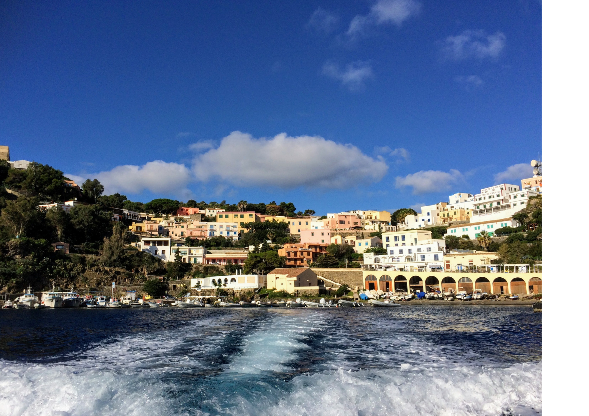 Le coste si presentano alte e rocciose, derivanti dall’attività vulcanica; magnifiche grotte formatesi a causa dell’attività erosiva si affiancano allo splendido mare cristallino del Tirreno. Proprio qui, nel 1986, grazie anche all’impegno di Marevivo, è stata istituita la prima Area Marina Protetta in Italia, testimone della biodiversità presente sui fondali adiacenti all’isola. Le acque calde e accoglienti – grazie alle correnti atlantiche che trasportano masse planctoniche nutrienti per la maggior parte degli organismi e all’effetto mitigatore delle acque del bacino Tirrenico – costituiscono l’habitat ideale per spugne, coralli, praterie di posidonia, pesci e anche specie minacciate come ad esempio la tartaruga caretta caretta.